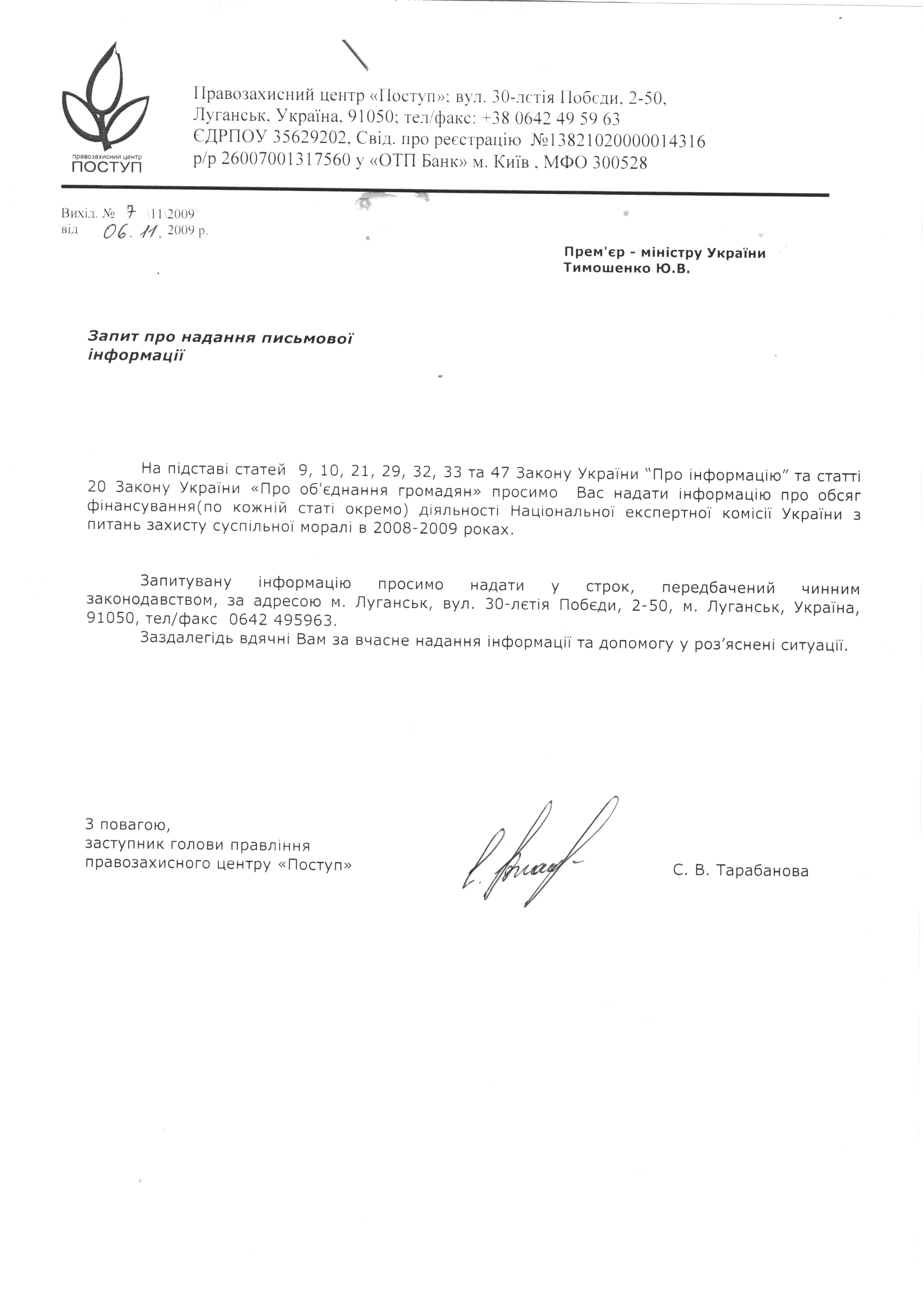 В ноябре 2009 года луганский правозащитный центр «Поступ» направил в Кабинет министров Украины информационный запрос с требованием предоставить информацию об объемах финансирования деятельности Национальной экспертной комиссии Украины по вопросам защиты общественной морали. Подробную информацию по каждой статье. На днях «Поступ» получил датированный вторым декабря ответ НЭК, который вместо запрошенных данных содержит весьма патетическое, растянутое на 2 страницы описание благородных целей и заслуг нацкоммора.