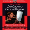 СР, 03/23/2011 - 02:12Здійснилося те, про що давно говорили культурні революціонери та люди доброї волі на Донбасі. З 5 по 7 квітня 2011 письменник, поет і перекладач Сергій Жадан вирушає в Донбас-тур. У рамках туру видатний поет, прозаїк, публіцист і перекладач презентує свій новий роман «Ворошиловград» у Донецьку, Луганську та Старобільську. Вже заплановані виступи в університетах і нічних клубах, театрах і будинках культури, на автострадах і заправках. Кульмінацією туру має стати виступ на занедбаному аеродромі в Луганську!