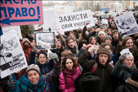 Під Могилянкою художники і студенти протестували проти закриття Центру візуальної культури
