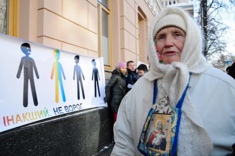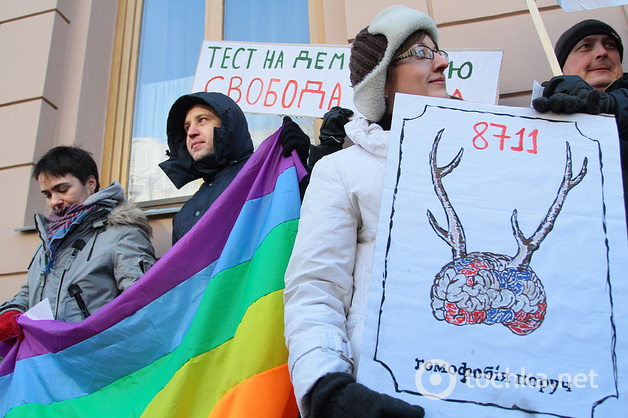 Стоит отметить, что митингующих против законопроектов о защите морали собралось не так уж много. В общей сложности, не более 20 человек. Даже несмотря на то, что в акции приняли участие представители восьми общественных организаций («Мы - европейцы», движение «Против цензуры в СМИ и искусстве», «Альянс Майдан», «Центр информации о правах человека», ГО «Инсайт», Правозащитный центр «Поступ», Независимый медиа профсоюз Украины, «Феменистическая Офензива»).
