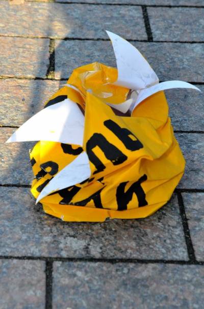 На вході біля рамки їх зупиняють співробітники Управління державної охорони і вимагають здати всі примірники брошури.